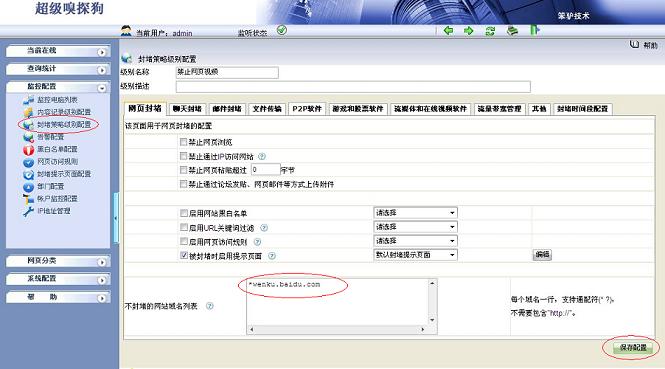為此,超級嗅探狗的“封堵策略配置”中提供了一個“不封堵的網站域名列表”功能,此列表中的網站不受任何其他策略的影響,也不會被禁止掉。