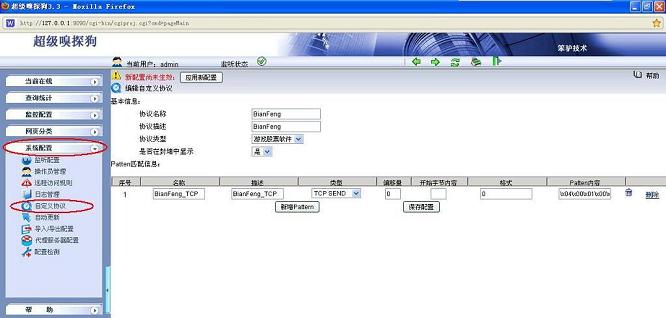 (1) 在“系統配置->自定義協議”中點擊“ 新增自定義協議”增加一個自定義協議,命名為BianFeng,協議類型選擇“游戲股票軟件”,如下圖所示: